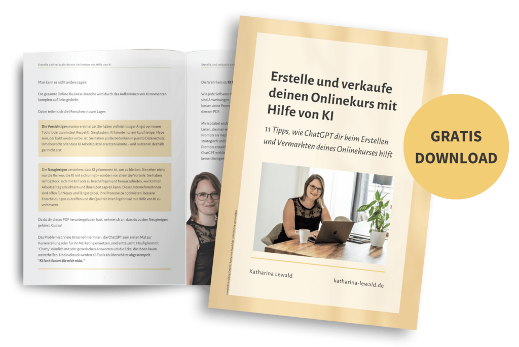 11 Tipps, wie ChatGPT dir beim Erstellen und Vermarkten deines Onlinekurses hilft – direkt in dein E-Mail-Postfach. Wenn du meinen Newsletter abonnierst: